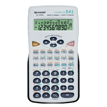 The Sharp EL-509V is a scientific calculator with 12 digits precision and formula input logic. It has an unknown number of functions, unknown keys and an LCD (liquid crystal) display. The power source is 2xLR44.