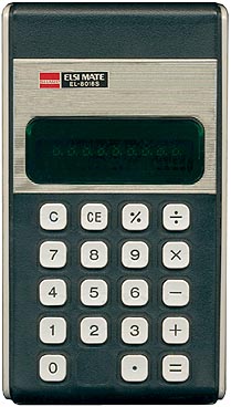 The Sharp EL-8016S ELSIMATE is an arithmetic calculator with 8 digits precision and algebraic logic. It has 5 functions, 19 keys and a VFD (vacuum fluorescent) display. The power source is 2xAA batteries. The calculator was manufactured in Korea.