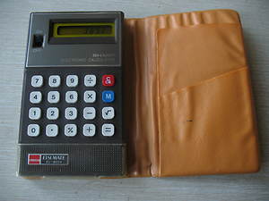 The Sharp EL-8034 ELSIMATE is an arithmetic calculator with 8 digits precision and algebraic logic. It has 6 functions, 20 keys and one of the early LCD (liquid crystal) displays which incorporated a yellow filter. The power source is 2xAAA batteries.