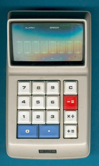The Sharp EL-8A is an arithmetic calculator with 8 digits precision and algebraic logic. It has 4 functions, 15 keys and a VFD (vacuum fluorescent) display.