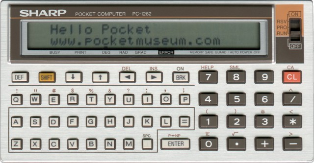 The Sharp PC-1262 is a programmable calculator with 10 digits precision and formula input logic. It has an unknown number of functions, 52 keys and an LCD (liquid crystal) display. The power source is 2xCR2032 3V.