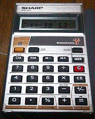 The Sharp WN-103 WONDERTOPIA is an arithmetic calculator with 8 digits precision and algebraic logic. It has an unknown number of functions, 28 keys and an LCD (liquid crystal) display.