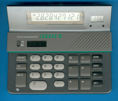 The Texas Instruments EUROPA 10 TI-611 is an arithmetic calculator with 8 digits precision and algebraic logic. It has 6 functions, 26 keys and an LCD (liquid crystal) display. The power source is LR1130 1.5V. The calculator was manufactured in Malaysia.