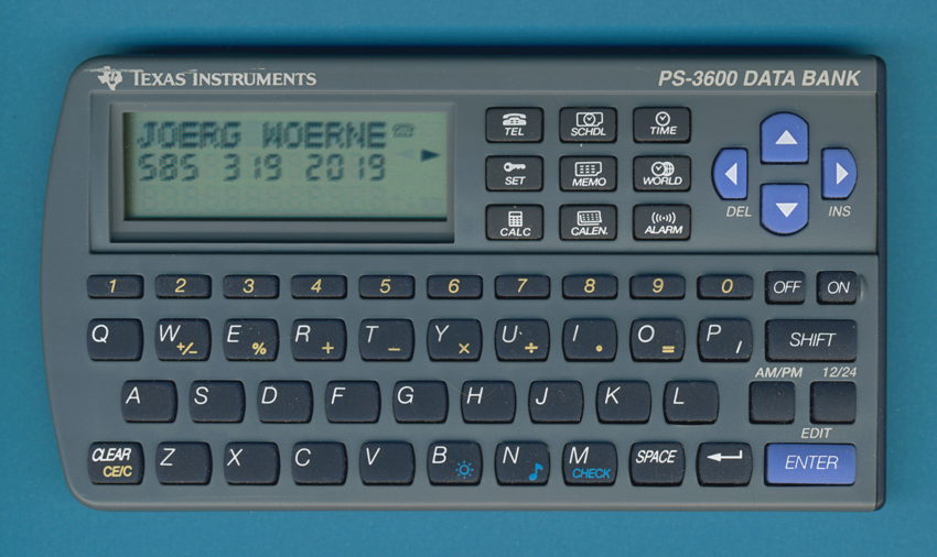 The PS-3600 could be called "medium sized" Databank. It features more RAM than the simple Databanks PS-2100 and PS-2400 but far less capabilities than the Personal Organizers, e.g. the PS-6200.