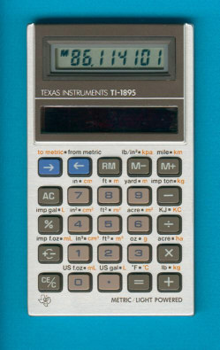 The Texas Instruments TI-1895 is an arithmetic calculator with 8 digits precision and algebraic logic. It has 6 functions, 25 keys and an LCD (liquid crystal) display. The power source is Solar. The calculator was manufactured in Japan.