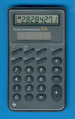 The Texas Instruments TI-306 is an arithmetic calculator with 8 digits precision and algebraic logic. It has 6 functions, 23 keys and an LCD (liquid crystal) display. The power source is Solar. The calculator was manufactured in China.