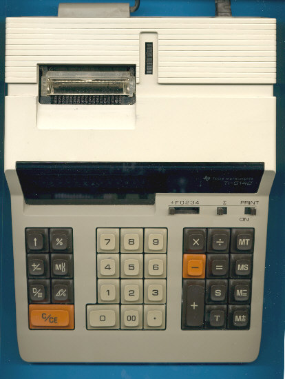 The TI-5142 continued the design line started with the TI-5040 and its 12-digits sibbling TI-5220.TI-5142 uses a mechanical printer which delivers 2.5 lines per second on plain paper.