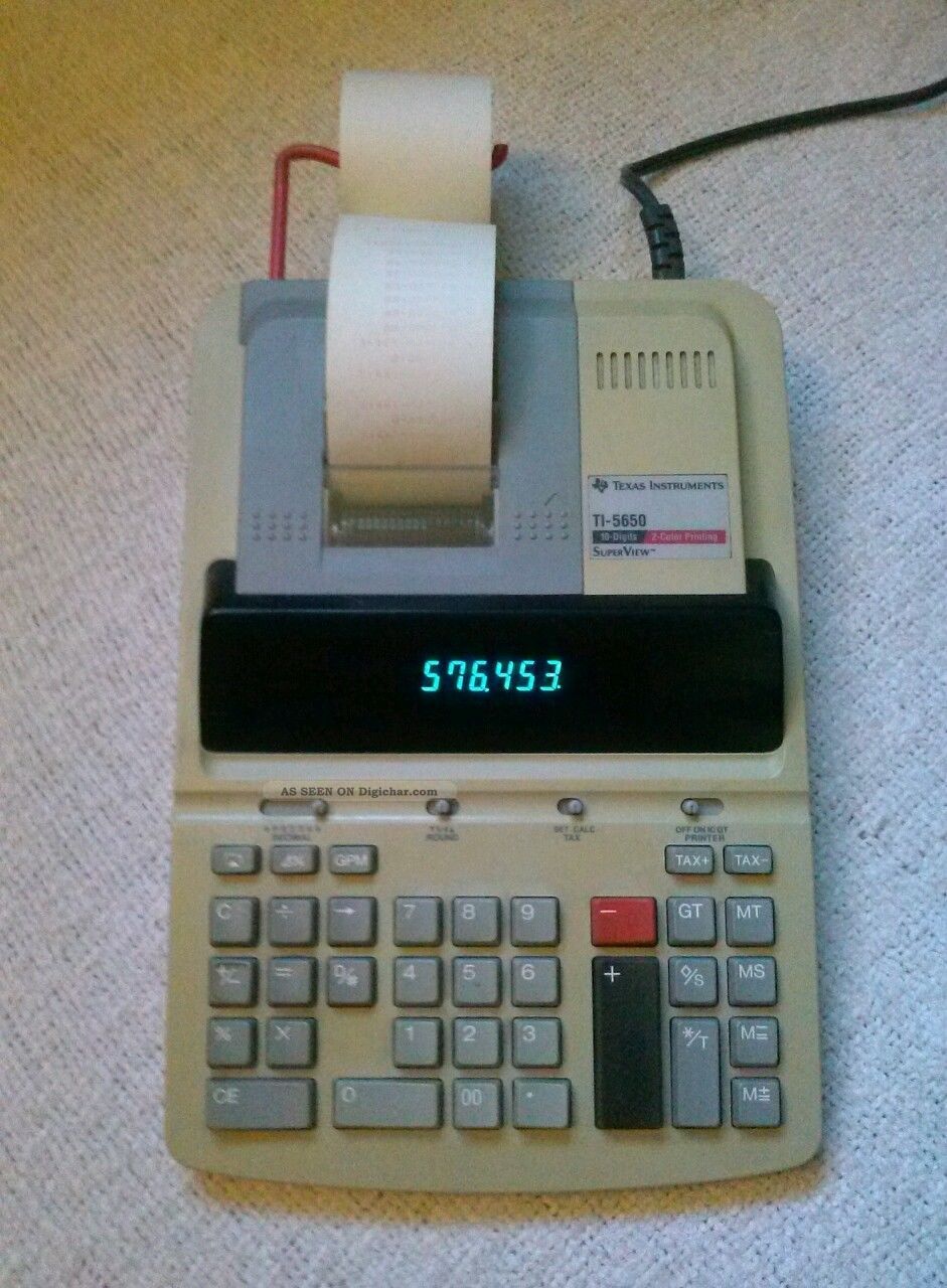 The TI-5650 sports a 10-digits display compared with the otherwise identical TI-5660.The UL-File number E202867 of the calculator reveals it as a product manufactured by INVENTEC APPLIANCES (SHANGHAI) CO LTD.