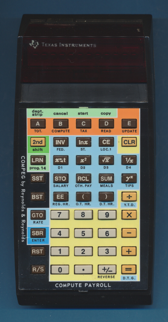 In October 1977, Reynolds and Reynolds introduced with the COMPEG 2001 payroll computing system the first application on the then brand-new Texas Instruments TI-59 utilizing the Solid State Software Modules.