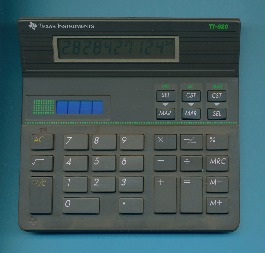 Texas Instruments introduced in Europe with the TI-620 a very useful calculator. Beside the basic calculator functions six additional keys enable the COST, SELL, MARGIN calculations. You enter either two of the variables and get instantly the result of the remaining value.