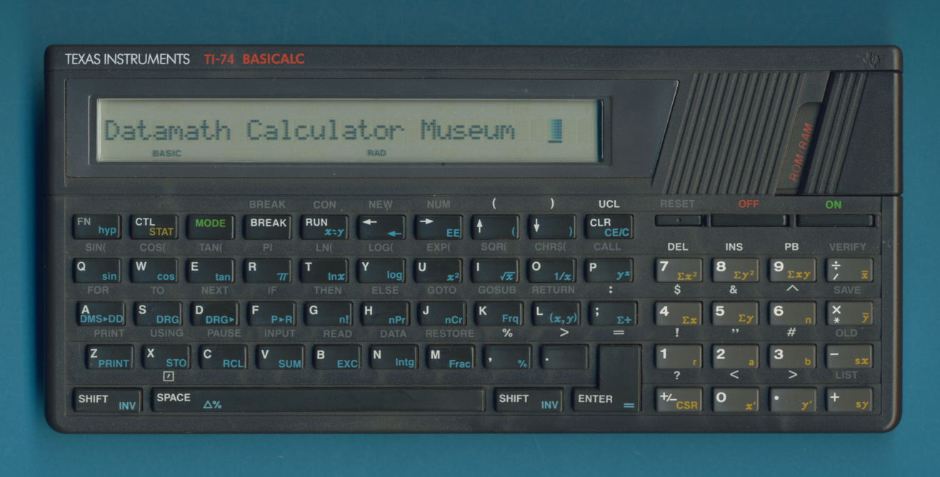 The Texas Instruments TI-74 Basicalc is a type of programmable calculator, which was released in 1985 to replace the Texas Instruments Compact Computer 40.