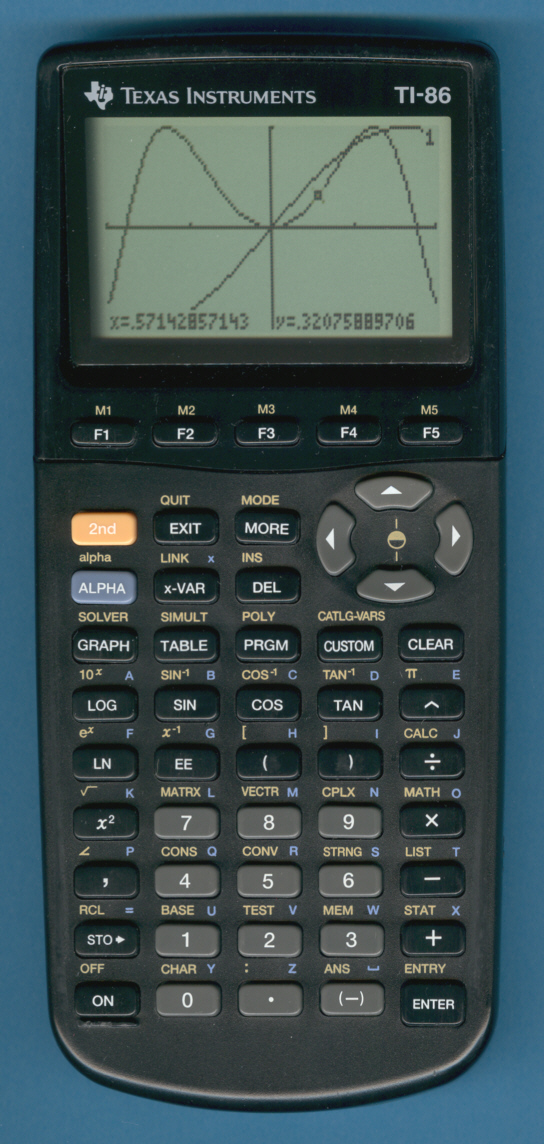 The TI-86 is a programmable graphing calculator introduced in 1997 and produced by Texas Instruments. The TI-86 uses the Zilog Z80 microprocessor. It is partially backwards-compatible with its predecessor, the TI-85.The TI-86 can be thought of as the tier among various Texas Instruments calculators directly above the TI-83 and TI-84 line.