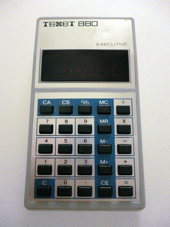 The Texet 880 EXECUTIVE is an arithmetic calculator with 8 digits precision and algebraic logic. It has 6 functions, 25 keys and an LED (light-emitting diode) display, typical of calculators of this era. The power source is PP3 9V.