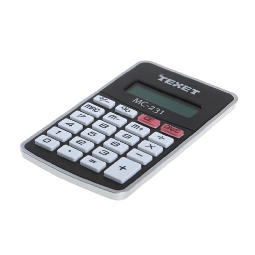 Texet Pocket Calculator. 8 digit display. Battery powered. Auto power off. Percentage function. Assorted colours: pink, black and blue.