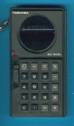 The Toshiba BC-602L TOSCAL is an arithmetic calculator with 9 digits precision and algebraic logic. It has 7 functions, 20 keys and a VFD (vacuum fluorescent) display. The power source is 4xAA batteries.
