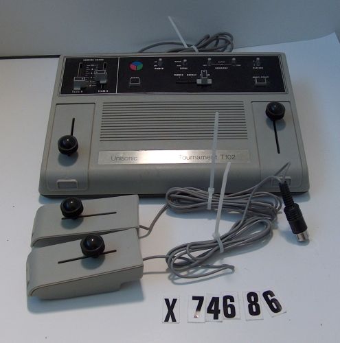 Tournament T102 is a dedicated console published in 1976 by Unisonic. Plays 3 Pong games in color: Tennis, Hockey, Squash