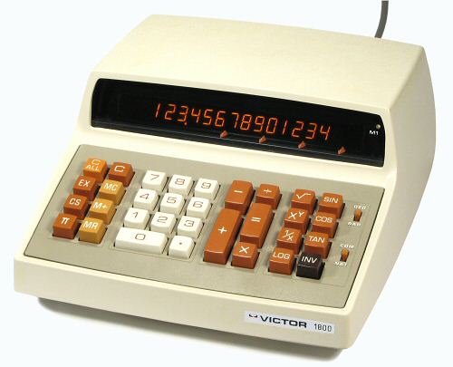 The Model 18-1721 is a "scientific" calculator that was built in mid-1973. It provides trig and log functions and their inverses, powers (including fractional and negative), square roots, and reciprocals. It operates in degrees or radians, and in common or natural logarithms, and has a single (accumulating) memory register.