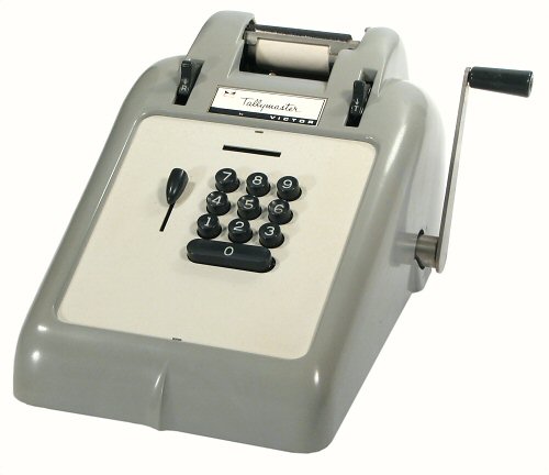 The "Tallymaster" name was used for Victor's smallest and cheapest machines. This 1960s version is still based on Mehan's original add-only mechanism from 1939, but with 7 columns and a moulded plastic rather than bakelite casing.