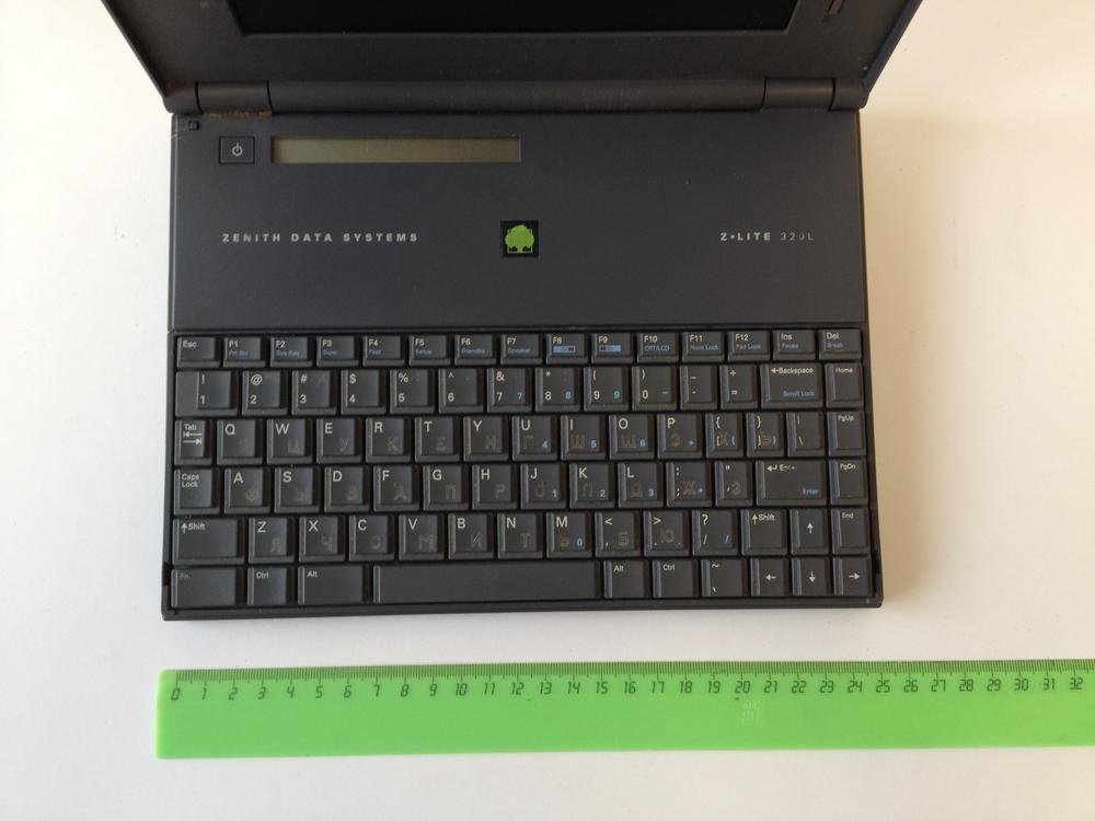 Rare and extravagant mini-notebook from Zenith, smaller than an A4 sheet, with grayscale LCD. For that time a complex power management is integrated. Two PCMCIA 2.0 slots are available. Unusual: the power supply is integrated into the external floppy drive. Front of the chassis, a Ballpoint Mouse are grown.