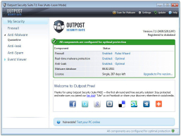 Anti-virus, firewall, anti-spam, and more for all-round proactive protection that's totally free. All-in-one online and offline malware defense and powerful data leak prevention combine to deliver robust, bullet-proof security for individuals and families. Version 7 contains System Guard to protect your operating system against hijacking. The anti-malware technology has received Virus Bulletin's acclaimed VB100 awards multiple times, which tells you can be confident that the software is well-equipped to detect and remove in-the-wild malware. The personalized anti-spam incorporates both traditional spam filtering criteria such as white- and black lists and keyword filtering. Agnitum's performance-driven security is lightweight and doesn't slow your computer down; it is even suitable for netbook and other low-end PCs. The SmartScan3 optimization boosts subsequent scan speed and overall system responsiveness. The new data filtering optimization delivers increased performance for the firewall module, further reducing resource usage. No matter your level of expertise, Outpost Security Suite Free will meet your needs with automatically-applied anti-malware updates as well as real-world security policies from the ImproveNet user collaboration network. This unique system automatically configures and applies rules that govern how various applications on the PC access the Internet based on extensive default settings for the most popular software packages. This relieves users of the need to correctly configure Outpost to handle different programs. OSS Free is the first completely free fully-functional security suite, setting a new standard for basic protection. Opposite to proactive protection systems that are ready only to prevent from infection, Outpost Free is fine with virus removal.