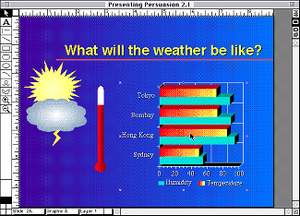 Adobe Persuasion (formerly Aldus Persuasion) was a presentation program developed for the Macintosh platform by Aldus Corporation. After it was acquired by Adobe Systems in 1994, when the two companies merged, a Microsoft Windows version was released. Adobe discontinued production from September 1997.