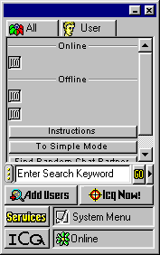 Short for I Seek You, ICQ is an Instant Messenger that allows you to quickly send messages to one or multiple users. The above illustration is an example of what ICQ's interface looks like. ICQ is a very simple to use application that allows members to send messages, URLs, images, and files to other ICQ members.