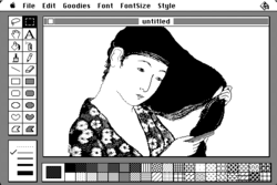 MacPaint was a bitmap-based graphics painting software program developed by Apple Computer and released with the original Macintosh personal computer on January 24, 1984. It was sold separately for US$195 with its word processor counterpart, MacWrite.[1] MacPaint was notable because it could generate graphics that could be used by other applications. Using the mouse, and the clipboard and QuickDraw picture language, pictures could be cut from MacPaint and pasted into MacWrite documents.[2] Pictures could also be cut from MacPaint and pasted into the resource fork of any application via ResEdit, allowing application internationalization.