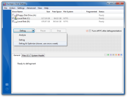 Disk Defrag will speed up your computer by optimizing file system. It can defragment files, consolidate free space and move system files to the faster part of the disk. With Disk Defrag you will get the maximum out of your hard drive performance. It is supplied with a powerful engine and smart algorithms which allow Disk Defrag to run much faster than similar tools. And with its comprehensive reports you will always be aware of what have been done. Disk Defrag features fast and safe defragmentation of the disk drives; optimization of clusters' structure and file system for even better disk performance.