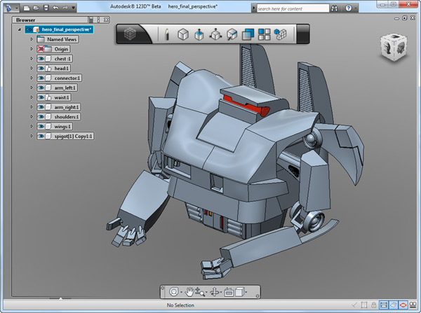 Autodesk 123D is a hobbyist CAD and modelling tool created by Autodesk. It is similar in scope to Trimble SketchUp and based upon Autodesk's Inventor product range. As well as the more basic drawing and modelling capabilities it also has assembly and constraint support and STL export. Available for the software is also a library of ready-made blocks and objects.