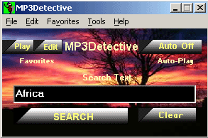 Search for your own MP3 music using your own criteria. MP3Detective searches simultaneously all your set music folders or drives with MP3's therein. Choose your own search phrase within the MP3's song or artist names. A powerful program, with a simple user interface. Click the results to play the song, songs, even play in random order! Always within easy reach on your desktop, system tray or Quick Launch Bar for rapid access.