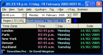 The software clock that calculates the current time anywhere that you choose in the World. Easy time zone addition, edit your contacts' names and check their time. Times available independent of the Internet.  Their current time is always within easy reach from your system tray, task bar or your nominated Hot Key Combination.