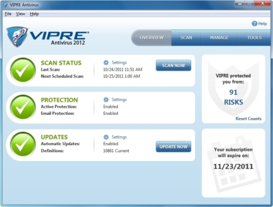 Get everything you need to protect your PC (and nothing you don't) with VIPRE Antivirus 2012. VIPRE combines antivirus and anti-spyware into a single, highly efficient solution that detects malware threats in real time via dynamic code translation, heuristics, behavioral analysis and tradition, signature-based technologies. The result is clean, fast and comprehensive malware protection that doesn't slow down your PC. VIPRE was developed with you in mind. It's the easy-to-use and affordable way to safeguard against viruses, worms, spyware, Trojans, bots and rootkits 24/7. So chat with friends, log into Facebook, play games, shop and pay your bills online knowing that your PC is protected. VIPRE licenses protect between one and 10 PCs for a period of one year to the lifetime of the PC. All licenses include free tech support from knowledgeable, friendly technicians and an 100% money-back guarantee.