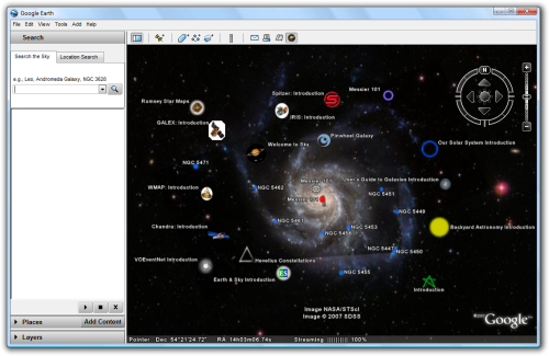 Google Earth puts a planet's worth of imagery and other geographic information right on your desktop. View exotic locales like Maui and Paris, as well as points of interest such as local restaurants, hospitals, and schools. Google Earth combines satellite imagery, maps, and the power of Google Search to put the world's geographic information at your fingertips. With Google Earth you can fly from space to your neighborhood--just type in an address and zoom right in, search for schools, parks, restaurants, and hotels. Get driving directions, tilt and rotate the view to see 3D terrain and buildings, save and share your searches and favorites and even add your own annotations.