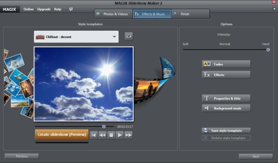 MAGIX Slideshow Maker 2. Create slide shows for YouTube, Flickr & Facebook - for free. Boring slide shows are finally a thing of the past: turn your photos and video clips into multimedia slide shows complete with effects and music and present them on YouTube, Flickr, Facebook, or in your personal MAGIX Online Album - it's quick, easy, and free. Easily import your photos and video clips with this free photo software, automatically apply style templates and add your own or the included music. Then upload your finished slide show as a video to YouTube, Flickr, or Facebook, present it in your personal MAGIX Online Album, or embed it into Web sites and blogs as a player. Easy multimedia slide show creation - without any prior knowledge and in just 3 minutes.