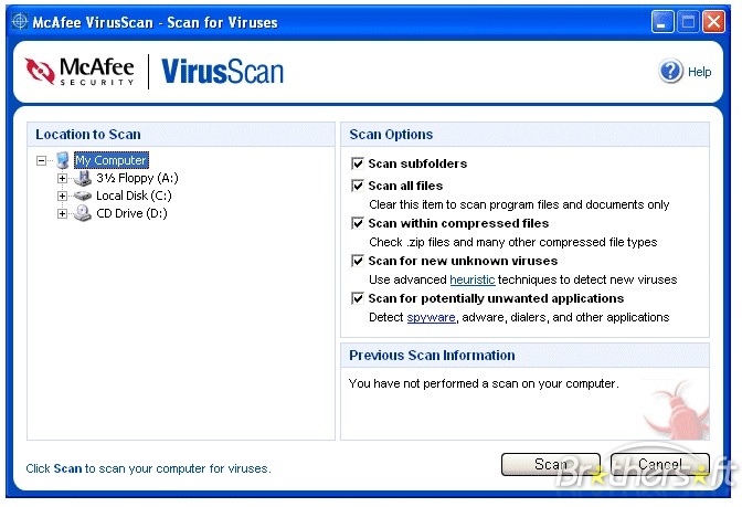 McAfee VirusScan boxMcAfee VirusScan is widely used antivirus scanning software program that loads into a computers memory and help protect it from computer viruses and other malware that could damage data or cause other computer problems. Many OEM companies such as Dell will include trial versions of McAfee or other antivirus programs to help lower the overall cost of the computer to the consumer.