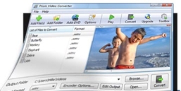 Prism is a shareware video file converter from NCH Software. It can convert files from and to most common formats, including AVI, MPG, VOB, WMV, and FLV, singly or in batches, and it also converts any file format based on a DirectShow codec into AVI and WMV files. Basically, if you can play it with Windows Media Player, you can convert it with Prism, according to the developer. It also fetches and converts files directly from DVDs and multimedia devices.Prism's gridded main view and control icons have the familiar look of most such tools, largely dictated by function and efficiency. Icons labeled Add Folder, Add DVD, Remove, Remove All, Play, and Convert hardly need much in the way of an explanation, and we quickly added an MPG file from our library to the program's convert list. Beneath the main view, we could browse to and select an output folder and format for our converted videos. Clicking Encoder Options called up a small dialog labeled AVI Encoding Settings with settings for video and sound compression standards as well as digital audio frequency and sample rate in both mono and stereo formats. The Video Options dialog let us resize the video and change the frame rate, while the Effects suite let us adjust brightness, contrast, and gamma; apply filtering; and add text for a title or captions in a font color of our choosing. Once we'd made all our choices, we clicked Convert, and Prism quickly processed our file and saved the finished job in our chosen folder. When we clicked on our converted video, it opened and played normally, to our eyes a perfect copy of the original.