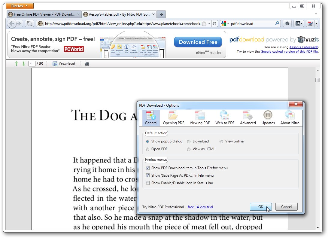 Use PDF Download to do whatever you like with PDF files on the Web and regain control. Web to PDF--Convert any Web pages to high-quality PDF files while retaining page layout, images, text and hyperlinks, and then save, share, print or archive them. View PDF as HTML--View the contents of PDF files faster and eliminate browser problems by instantly converting any Web-based PDF to a browser-friendly HTML Web page. Control PDF files--Stop crashes and get the upper hand on Web-based PDF files by automating and controlling how your browser deals with them.