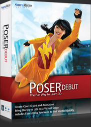 Poser Debut comes with everything you need to get started in 3D. You’ll quickly learn 3D with our easy to follow, step by step project guide. And Poser Debut’s library includes dozens of ready to pose 3D characters from cute cartoon characters and animals to robots and accurate photo-realistic humans. Poser Debut also includes lots of clothing, props to build scenes, cameras, lights and pre-built poses that can be dropped right onto your characters. Within minutes you can start to render 3D scenes into gorgeous art and cool animations that will impress your family and friends.