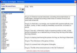 Dictionary English - Hindi is a dictionary for English to English and English to Hindi. It has a large database of words. Few important features are: English to Hindi, English to English, and Minimize to system tray.