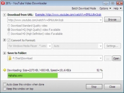 Ever see a video on YouTube and wish you could have it and play on your iPod? YouTube Video Downloader just does it. YouTube Video Downloader is a windows utility to download your favorite videos from YouTube up to 300% faster. It also converts video to MP4, 3GP, 3G2, AVI, WMV, VOB, MPEG1, MPEG2, MP3, ringtone and more various formats, so you will be able not only to view it, but also put it into your iPod, iPhone, PSP, Cell Phone or any other mobile device. YouTube Video Downloader is powerful but easy to use, just drag and drop or copy and paste URL for the video you want to download, click Download button to start downloading.