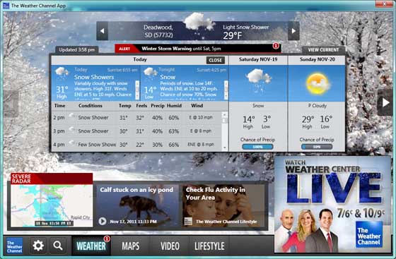 Get instant access to your local temperature and severe-weather alerts. This program includes one-click access in your system tray to detailed local weather conditions and information on locations worldwide, including maps, radar, current conditions, forecasts, and even live local traffic reports.